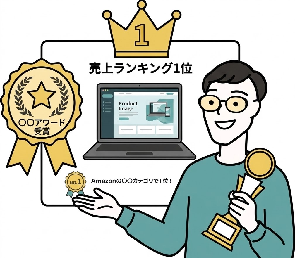 「売上ランキング1位」「〇〇アワード受賞」などの実績を商品画像に組み込むと、